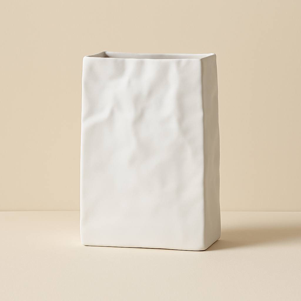A jarra Carta é uma ode à elegância contemporânea. Com design inspirado na forma de um saco de papel, em porcelana branca polida, é mais do que um recipiente para flores — é uma escultura minimalista que transforma qualquer ambiente.