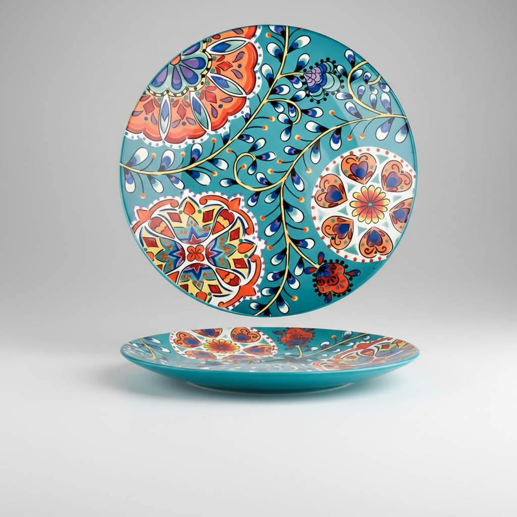 Vibrante e festivo, o Prato Floralis Latin Style apresenta padrões coloridos que celebram a energia e o ritmo das culturas latinas.
