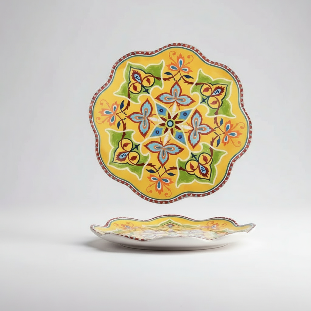 O Prato Floralis Rock Gardens combina tons terrosos e florais subtis, inspirado na serenidade dos jardins de pedra orientais.