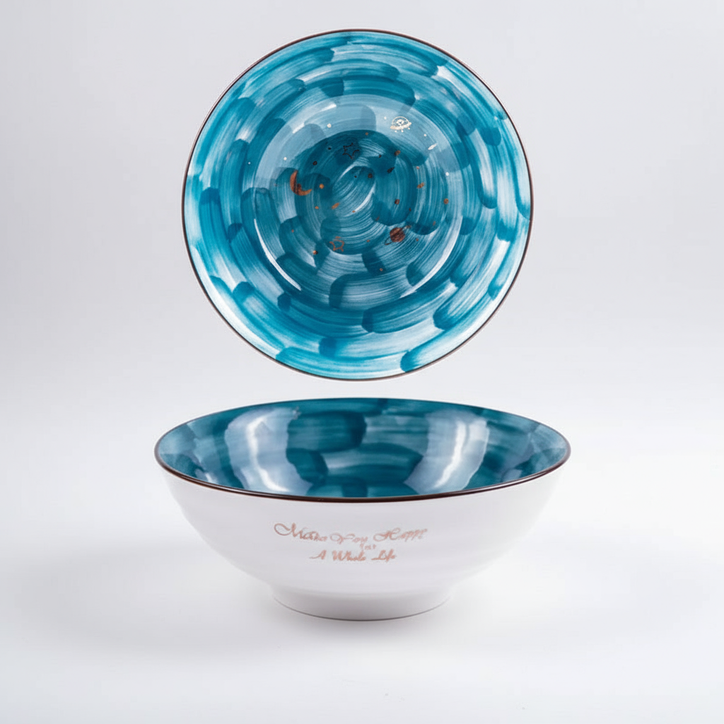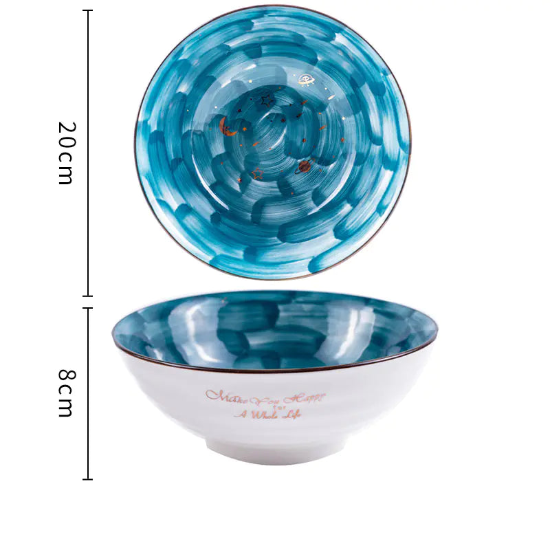 A Taça Grande Stella é a escolha ideal para sopas, saladas ou pratos principais. Pintada à mão com o padrão céu estrelado, une funcionalidade e arte em cada refeição.