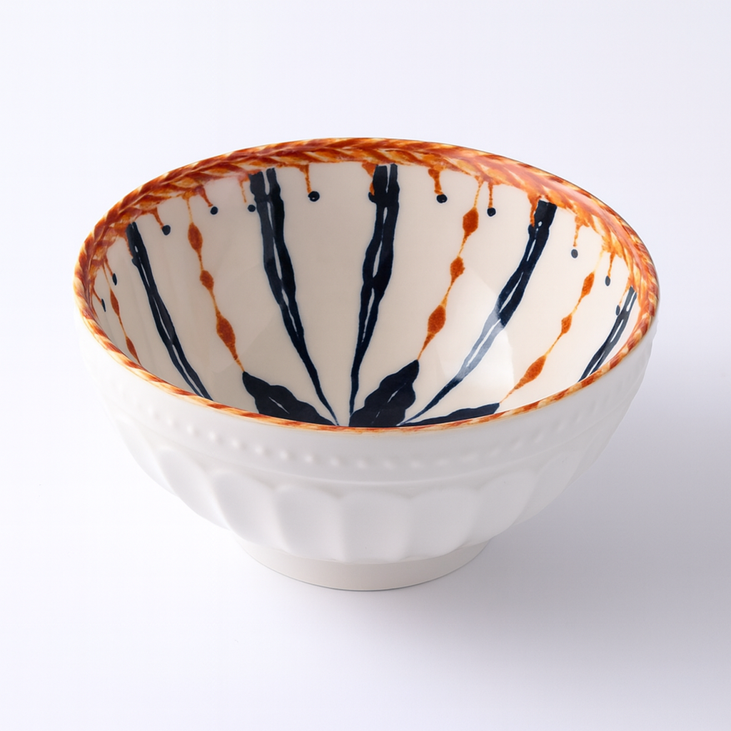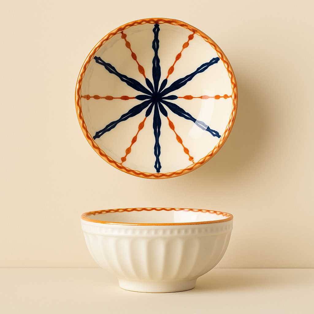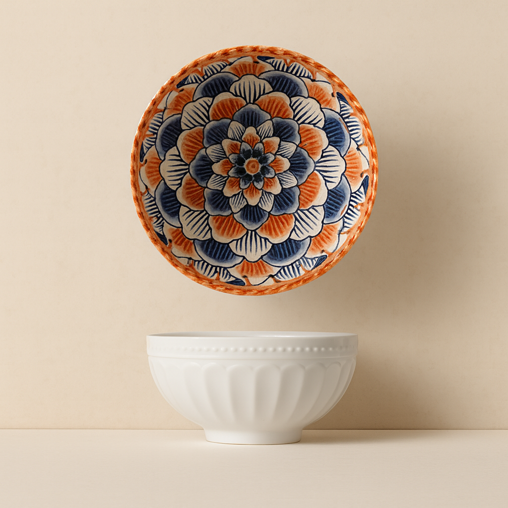 A taça Hana evoca a ligação entre a natureza e a estética , celebrando a delicadeza das flores em cada detalhe. O seu padrão botânico, inspirado em vinhas e flores tradicionais, transforma a mesa numa extensão do jardim, onde simplicidade e beleza caminham lado a lado.