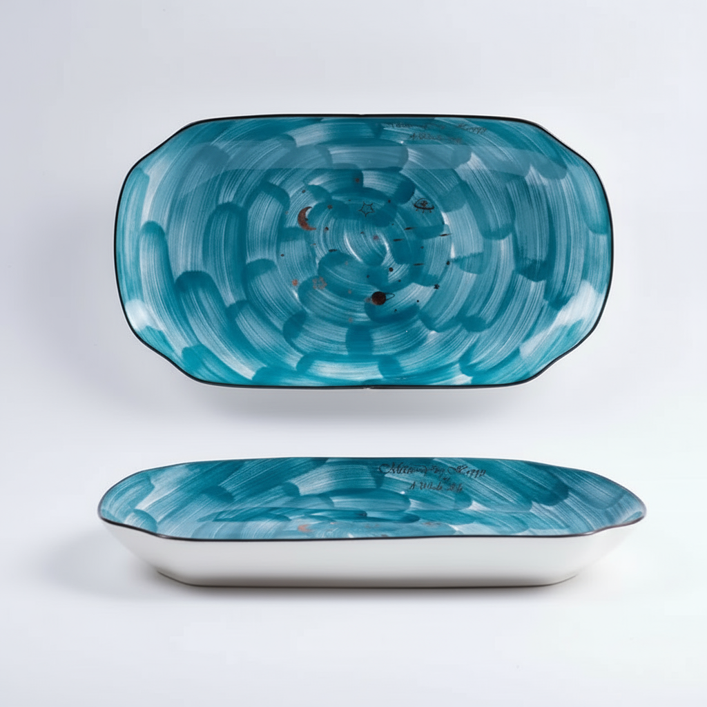 A travessa Retangular Stella é perfeita para peixe, sushi ou pratos de partilha. Com a estética estrelada nórdica, transforma qualquer refeição em uma experiência visual inesquecível.